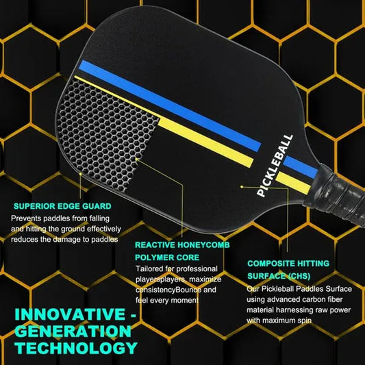 Graphite Pickleball Paddles USAPA Fiberglass Paddle with Bag Yellow Blue Line
