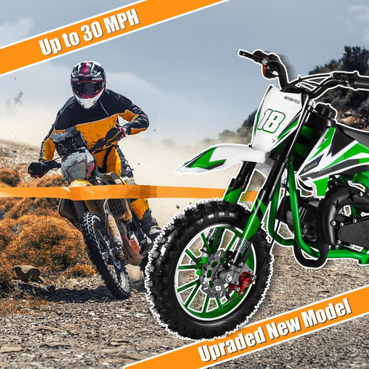 Explorinox 49Cc 2-Stroke Kids Dirt Bike, Gas Power Motocross, off Road Mini Motorcycle, Pocket Motorbike with Front Rear Disc Brakes (Green)
