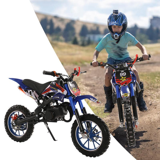 Explorinox 49Cc 2-Stroke Kids Dirt Bike, Gas Power Motocross, off Road Mini Motorcycle, Pocket Motorbike with Front Rear Disc Brakes, Racing Max Speed 40KM/H (Blue)
